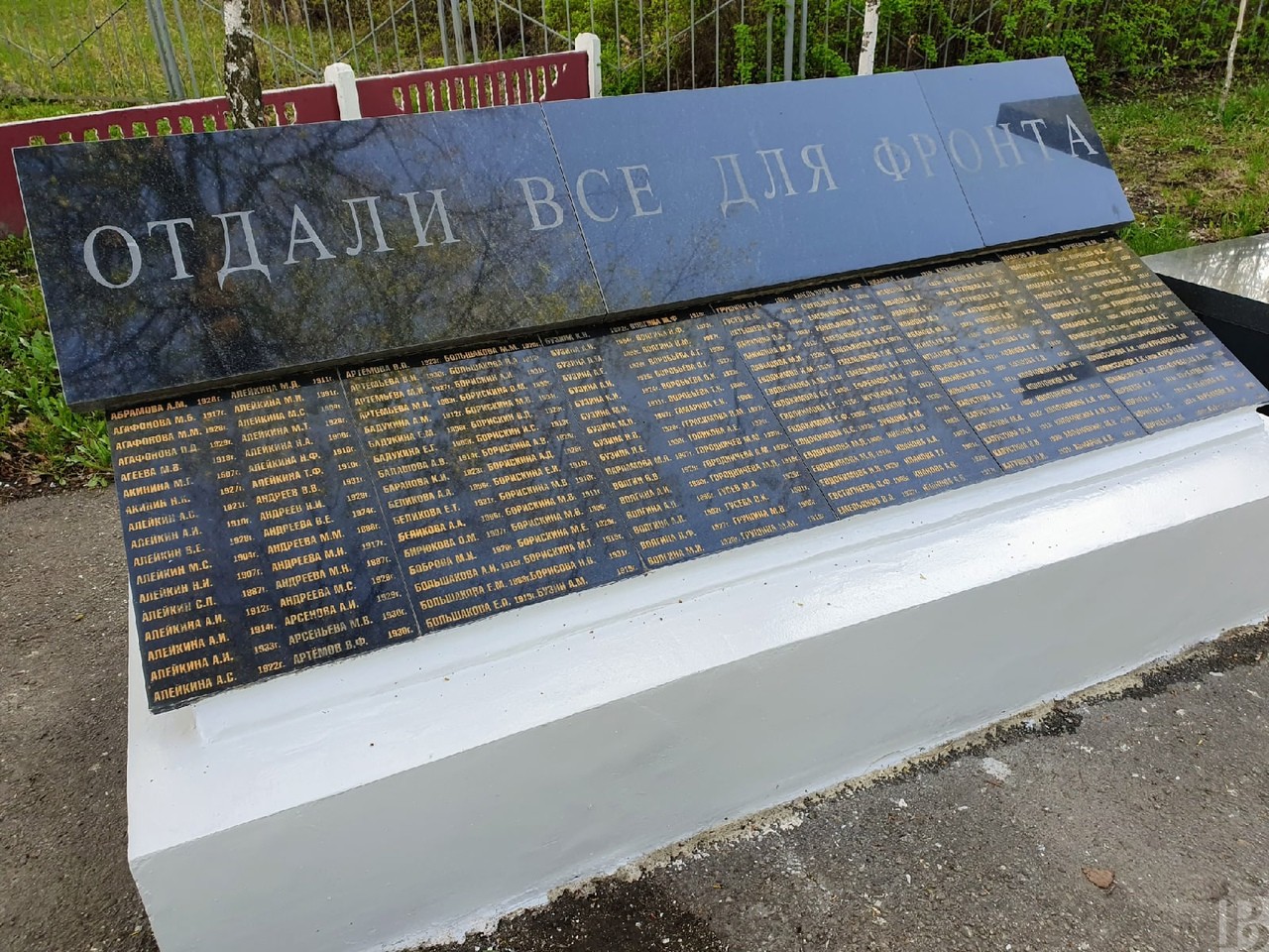 Председатель первички Игорь Яшин постоянно следит здесь за чистотой, убирает мусор. В первые майские дни он побелил основание обелиска, отмыл гранитные плиты, на которых начертаны имена погибших за Родину сельчан и умерших ветеранов.