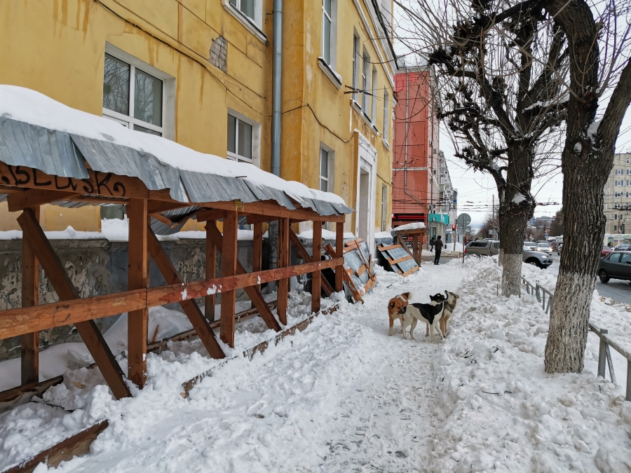 Некоторые здания в областном центре капитального ремонта заждались, но денег как не было, так и нет. С крыши бывшего филиала Московского государственного института культуры сходят снежные лавины, о чем сообщают очевидцы в соцсетях. Тротуар покрылся толстым слоем льда, убирать его некому. Институт закрыли, а здание, находящееся в федеральной собственности, стоит пустым уже два года и разваливается. Наледь и ограждения сделали тротуар таким узким, что если встречный прохожий чихнет, то деваться некуда.