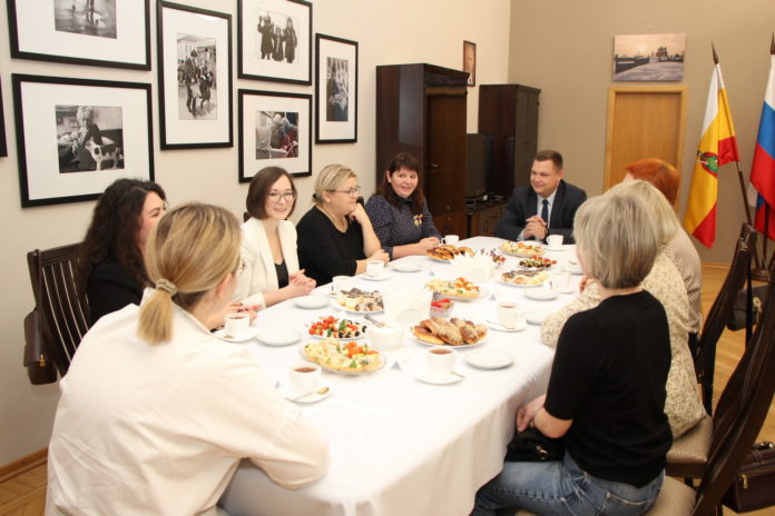 На встрече в администрации города Рязани присутствовали Екатерина Воронина – мама 10 детей, Людмила Красенькова – мама, воспитывающая девять приемных детей, Елена Боборыкина – председатель родительского комитета школы №3, автор проекта «Семейный музыкальный фестиваль «Семья и песня», Надежда Коба – мама трех детей, руководитель волонтерского отряда «Луч» на базе школы № 22, Елена Халяпина – мама троих детей, Юлия Лановая – многодетная мама, общественный деятель, Член Союза женщин России.