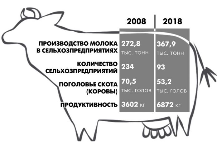 Несмотря на то что поголовье скота в сельхозорганизациях значительно сократилось (почти на треть), валовое производство, наоборот, увеличилось – на 35,3%. А надой на одну фуражную корову и вовсе побил все рекорды, скакнув с 3600 до 6870 кг.