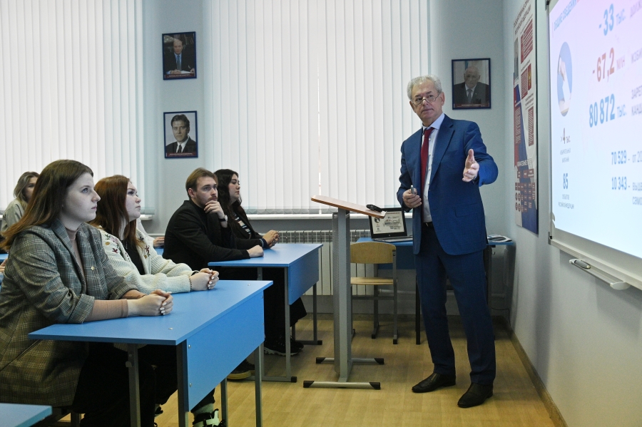 Сразу после этого Николай Булаев во вновь открытом Центре избирательного права и процесса провел открытый урок для студентов юрфака РГУ имени С.А. Есенина.