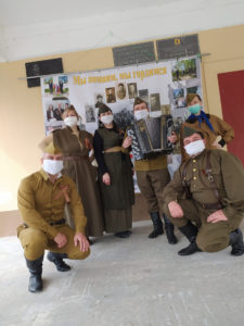– День Победы для нас – особенный праздник, и мы не могли не поздравить земляков даже в условиях карантина. Наши юные артисты подготовили номер “Синий платочек” и станцевали в костюмах по моде конца 40-х и военной форме. Конечно, ребятам непросто было выступать в масках, но они справились и были очень рады!