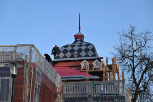 Экскурсовод Ксения Паначёва давно интересуется судьбой памятника. Ей приходится отвечать на вопросы экскурсионных групп. Несколько лет назад, отправив запрос через «Госуслуги», Ксения получила ответ от Управления энергетики и ЖКХ, что исторический дом подлежит реконструкции до 2027 года. На снимке видно, что до этого срока он может не дожить. Увы, законы не позволяют жильцам или обслуживающим организациям самостоятельно проводить текущие ремонты в домах, охраняемых государством. К работе допускаются только лицензированные компании. Но порой они приходят уже тогда, когда и сохранять нечего.