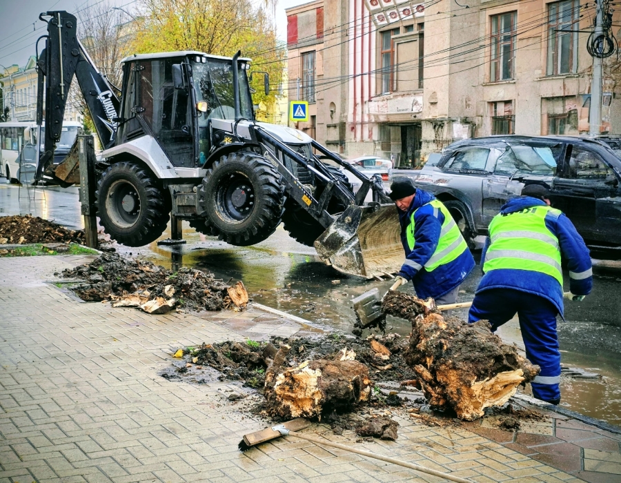 В Рязани реализуется проект «Зелёный город». На тротуаре улицы Ленина уже удалены старые и больные деревья, завершается раскорчевка пней. На их места будут высажены клены и спирея. Работы производятся от пересечения с улицей Свободы до пересечения с улицей Праволыбедской и завершатся по плану к 1 ноября.