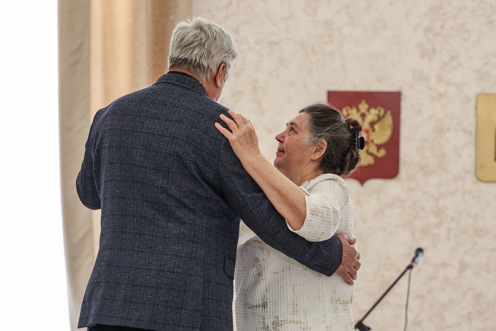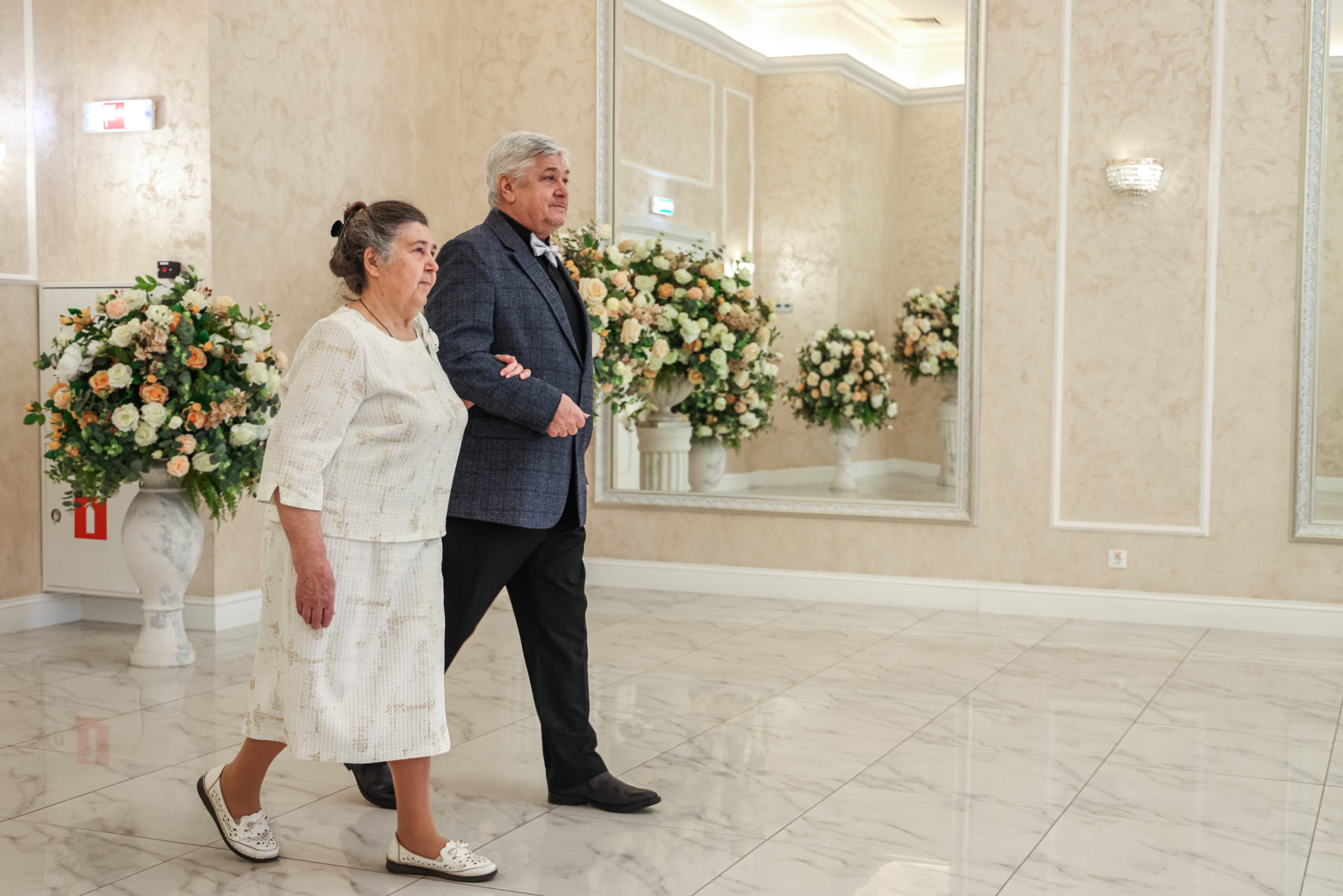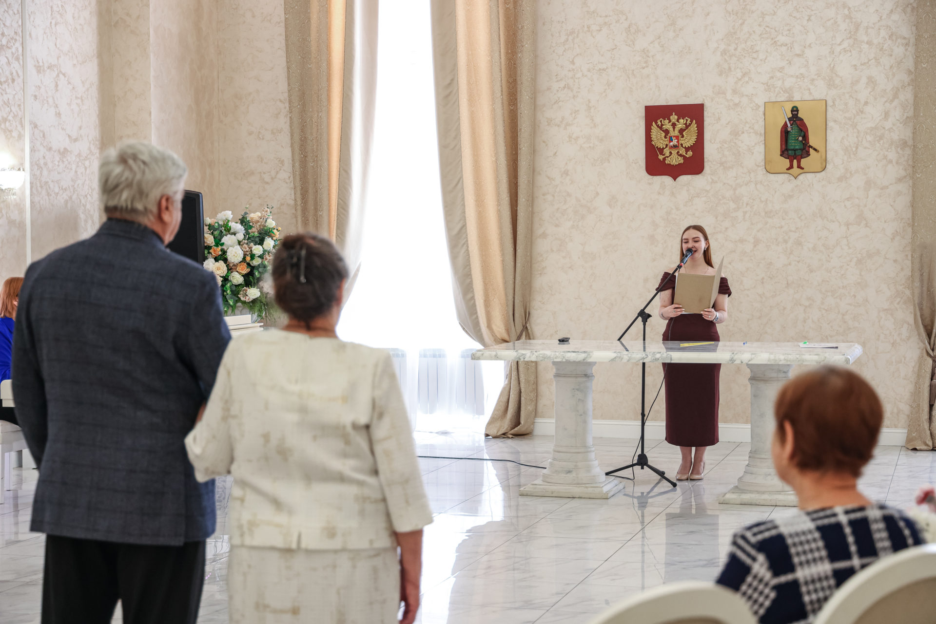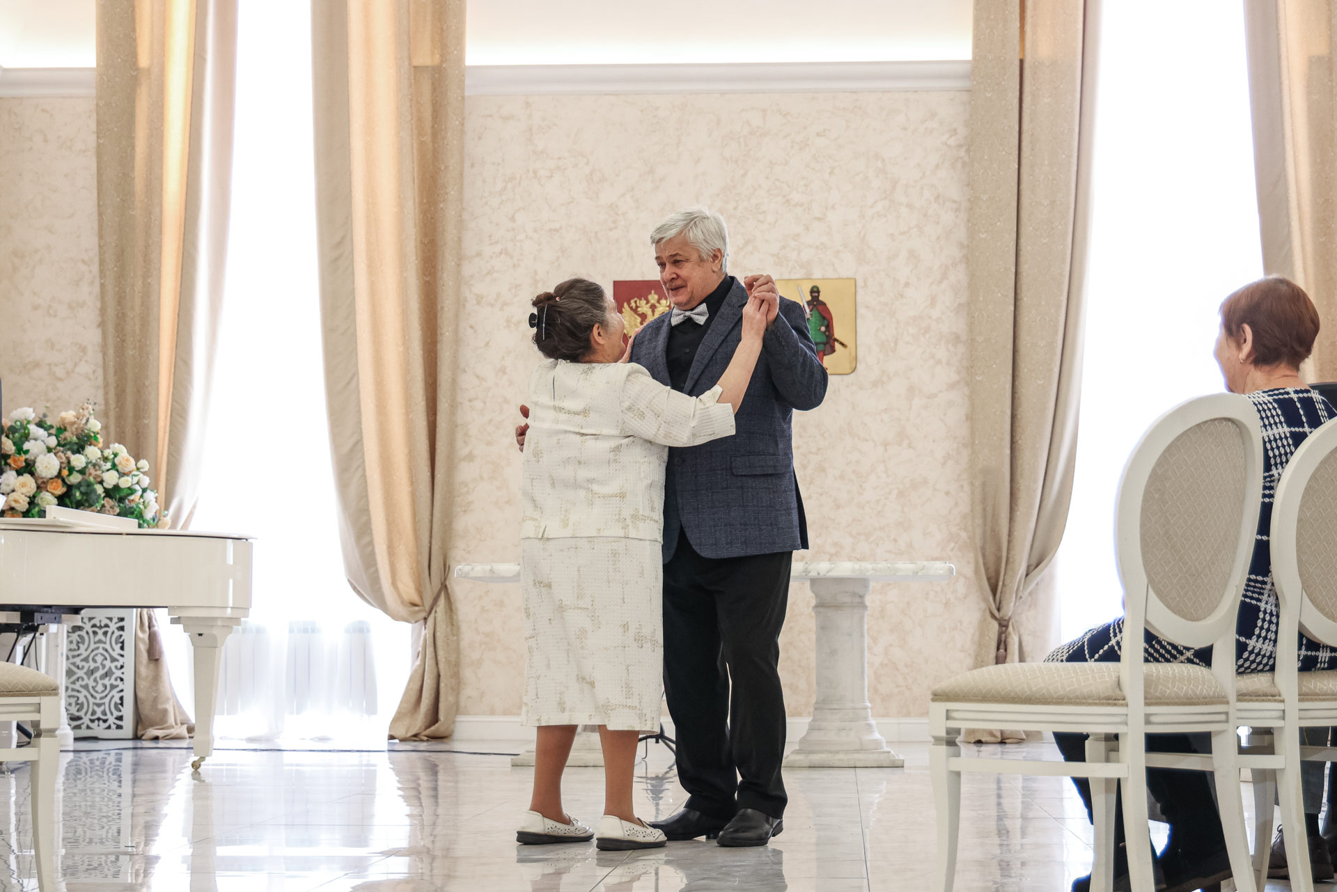 Церемонии проходили в течение дня. Кроме этого, прошло чествование пар с солидным семейным стажем. Так супруги Юдаевы поженились тоже в преддверии Нового года, но только полвека назад, а сегодня у них «золотая» свадьба. Наталья и Анатолий были знакомы со школы, расписались после службы молодого человека в армии. Они говорят, что секрет их счастливой жизни — в терпении и прощении.