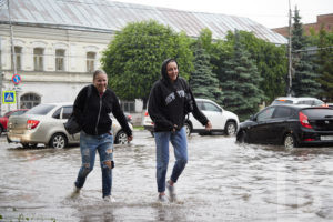 Практически весь Первомайский проспект, а также новый Астраханский мост на улице Ленина превратились в сплошную реку. Подтопления наблюдаются повсеместно из-за слабой пропускной способности ливневой канализации, а также несоблюдения необходимых параметров при ремонте дорог и укладке асфальтового полотна, обеспечивающих сток воды.