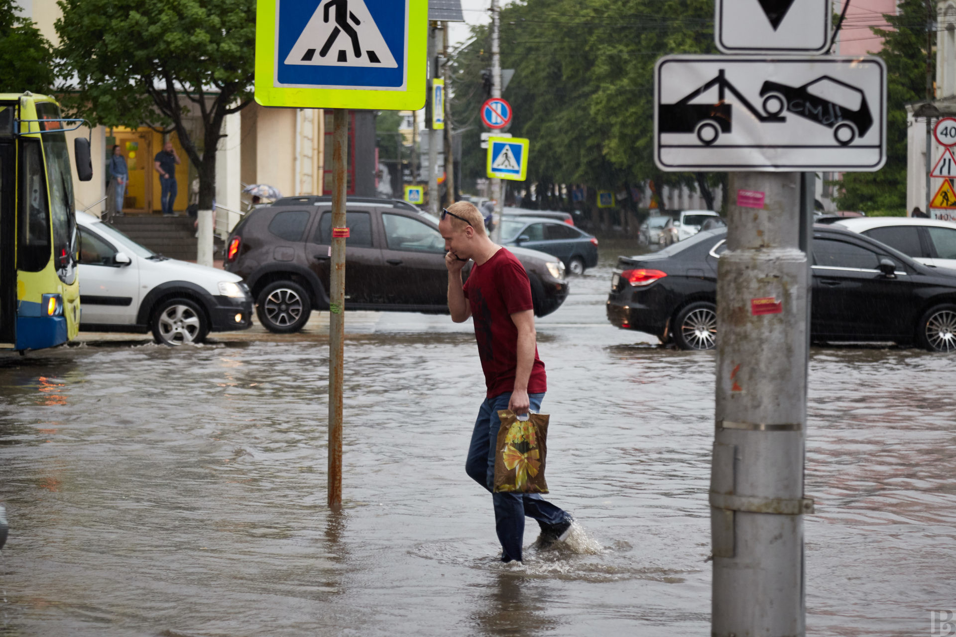 Практически весь Первомайский проспект, а также новый Астраханский мост на улице Ленина превратились в сплошную реку. Подтопления наблюдаются повсеместно из-за слабой пропускной способности ливневой канализации, а также несоблюдения необходимых параметров при ремонте дорог и укладке асфальтового полотна, обеспечивающих сток воды.