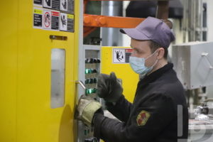 Глава региона посетил цех литья под давлением и гальвано-термический цех ООО «Бордер». Директор завода Сергей Греченко представил гостям предприятия образцы готовой продукции и новейших роботов, которые в настоящее время работают на производственных линиях предприятия.