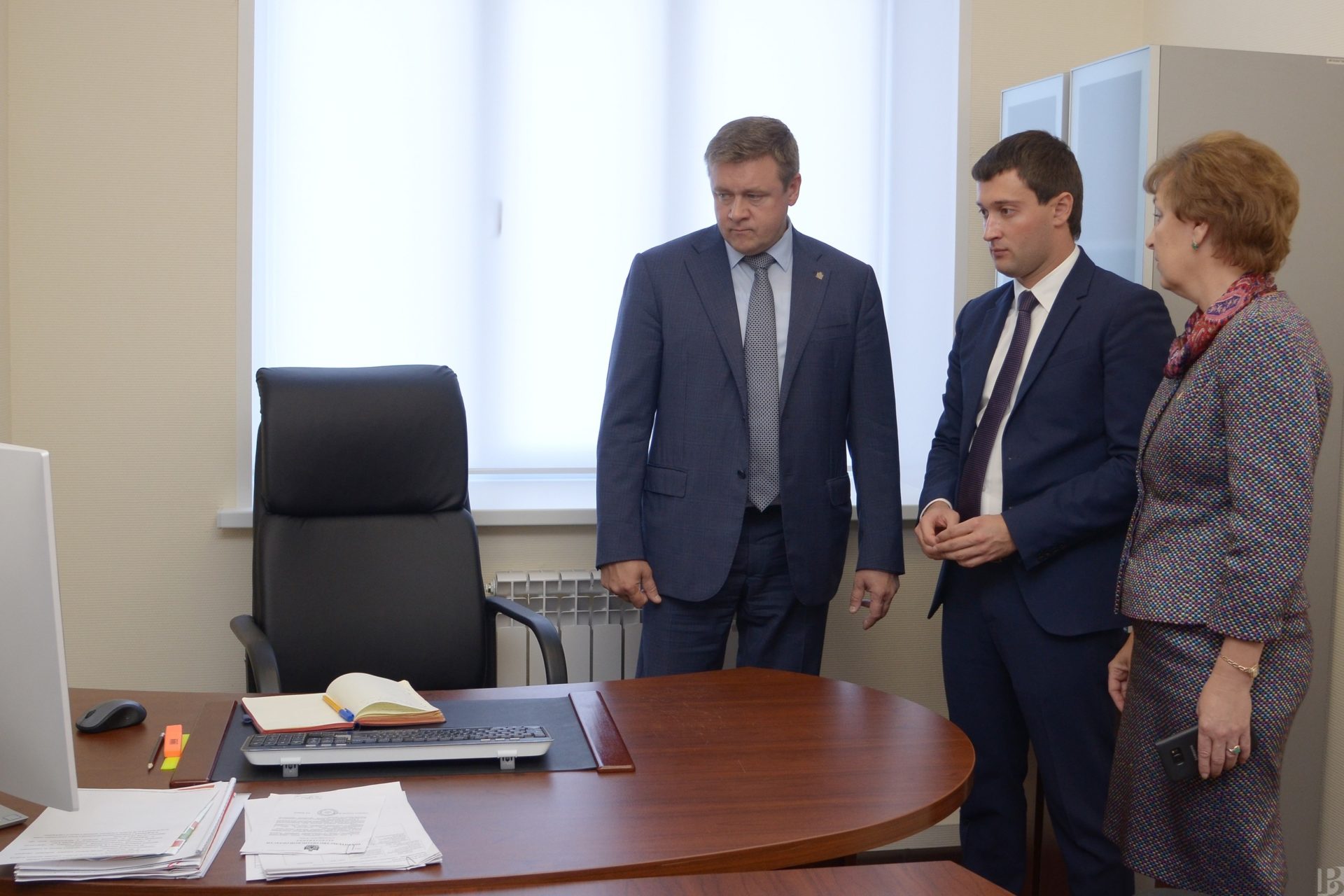 Новые помещения губернатору Николаю Любимову показала министр образования и молодежной политики области Ольга Щетинкина. Просторные, светлые кабинеты, оформленные в едином стиле, переговорная с системой видеоконференцсвязи, на рабочих местах – идеальный порядок и минимум лишних вещей, вся документация систематизирована по папкам. Так на деле выглядят бережливые технологии, которые внедряются в ведомстве совместно с областным центром бережливого производства.