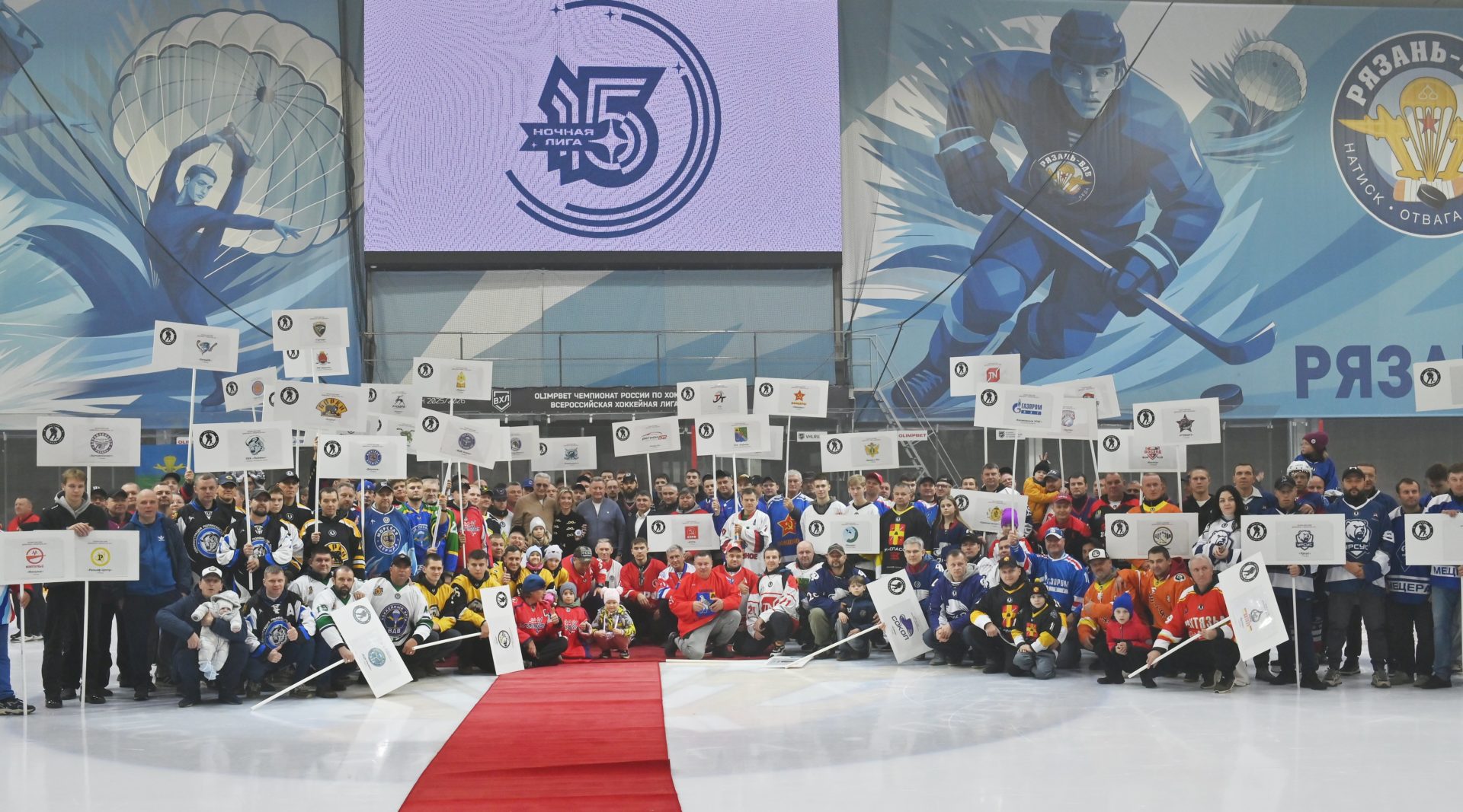 На торжественной церемонии открытия 15 сезона Ночной хоккейной лиги спортсменов и зрителей приветствовали исполняющий обязанности министра физической культуры и спорта Рязанской области Виталий Шабанов, исполнительный директор Ночной хоккейной лиги России Лариса Радченко, президент федерации хоккея Рязанской области, региональный представитель Ночной хоккейной лиги Олег Смирнов, выдающийся советский хоккеист, двукратный олимпийский чемпион (1972, 1976) и семикратный чемпион мира (1967, 1969, 1970, 1973-1975, 1979) Александр Якушев. В его послужной список входят также титулы 3-кратного чемпиона СССР (1967, 1969, 1976) и обладателя Кубка СССР (1970, 1971). Его ввели в Зал хоккейной славы в Торонто (2018) и Зал славы Международной федерации хоккея (2003).