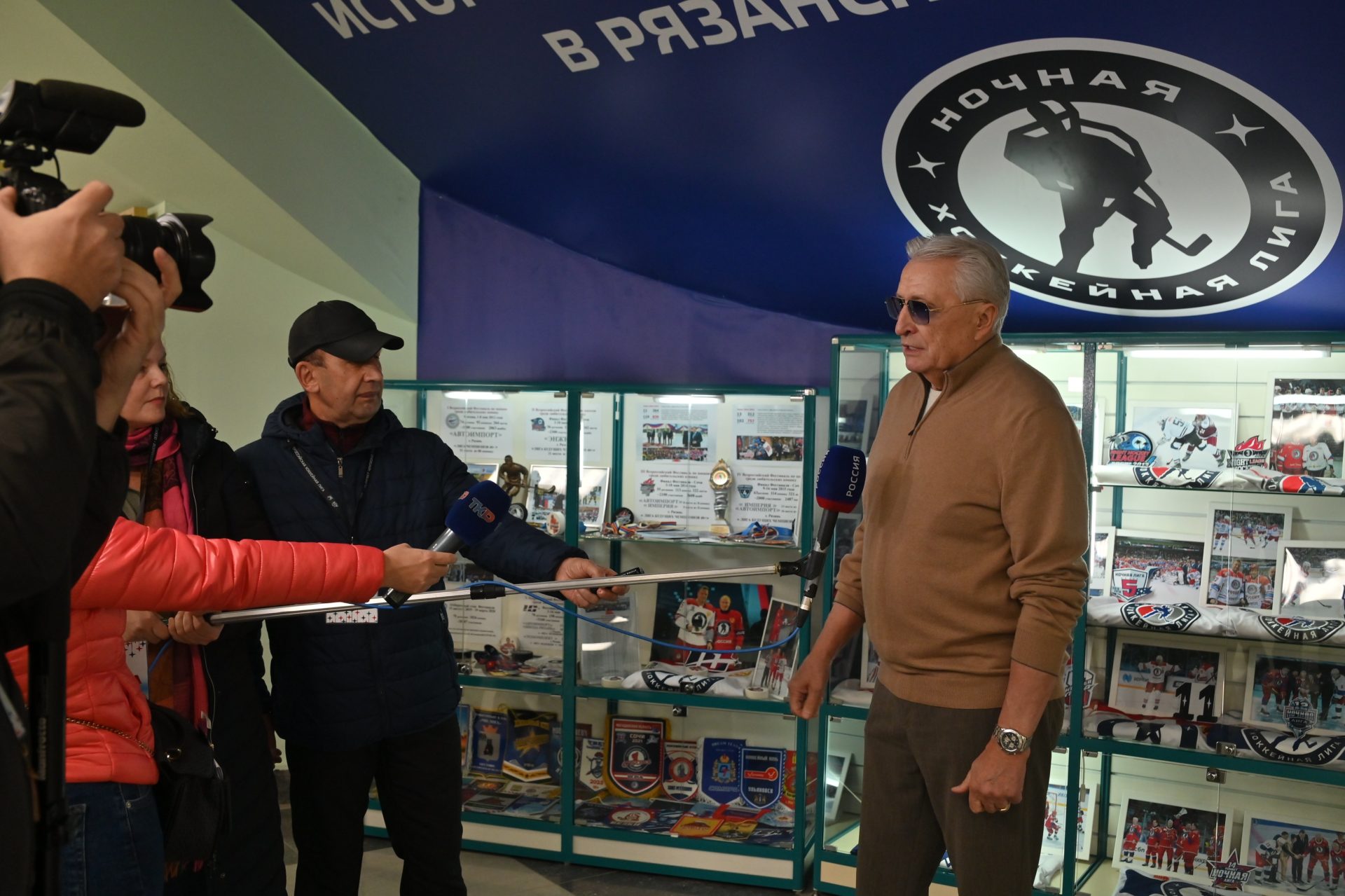 Олег Евгеньевич провел экскурсию для журналистов в открывшемся музее Ночной хоккейной лиги. Там можно узнать обо всём, что происходило на рязанском любительском льду с 2011 года.
