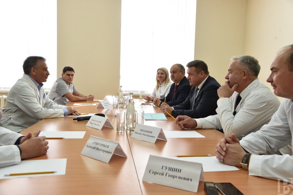 В старом здании губернатор побывал в рентгенодиагностическом и анестезиолого-реанимационном отделениях, а в корпусе радиологического отделения (построен в 2011 году) встретился и побеседовал с главным врачом Михаилом Рязанцевым и заведующими отделениями.