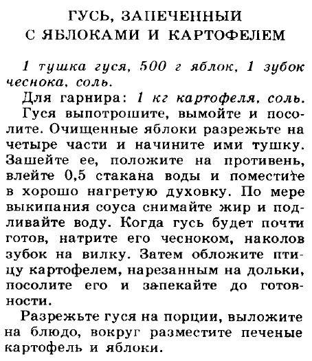 Конечно же, во главе новогоднего стола всегда была птица. В одних семьях подавали гуся (рецепт которого мы тоже прилагаем), в других – утку. Михаил Барабанщиков, шеф-повар кафе «Графин», советует приготовить эту птицу в медовом соусе. Правда, подать ее получится только на рождественские праздники, так как тушку птицы необходимо два дня мариновать.
