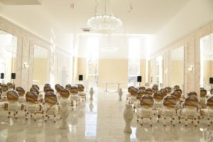 Работы по реконструкции бывшего кинотеатра «Москва» для размещения в нем Дворца торжеств близятся к завершению. Это станет большим подарком для рязанских молодоженов. Теперь торжественная регистрация браков будет проходить в новых условиях. На втором этаже дворца для этого предусмотрены два зала («золотой» и «лавандовый») – просторный холл с зоной для фотосессий, отдельные комнаты для жениха и для невесты.