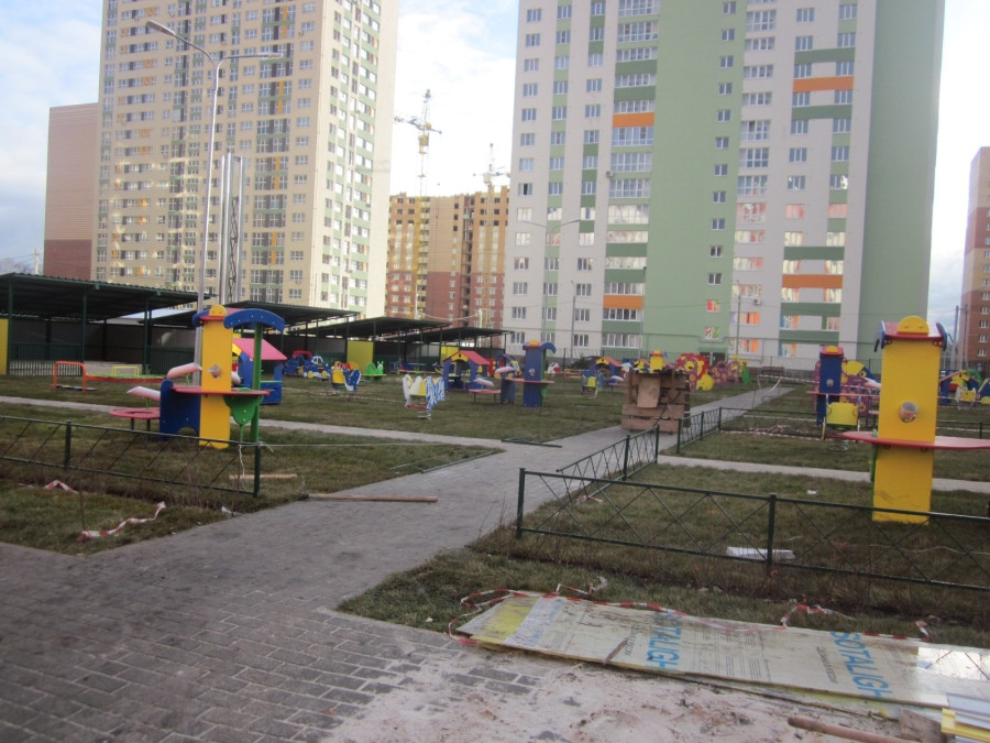В настоящее время на объекте работают не только евростроевцы, но и мастера из субподрядных организаций. Ведется устройство сетей водоснабжения, монтаж системы теплого пола и отопления в целом, установка оконных блоков на третьем этаже, отделочные работы. Строители спешат, чтобы к концу ноября все было готово к приему детишек. Заканчивается устройство теневых навесов и установка малых архитектурных форм. По сути, рядом с детским садом создан сказочный уличный городок.