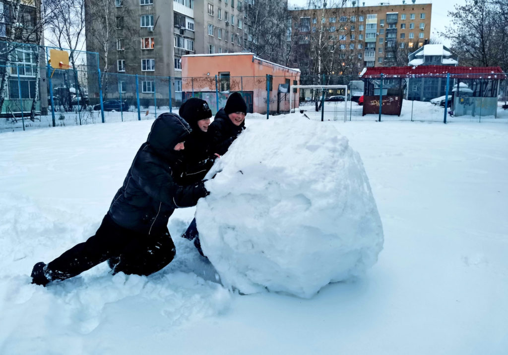 Ребята во дворе помогают устранять последствия сильных снегопадов – делают снеговика на спортивной площадке. Расчисткой придомовых территорий обязаны заниматься управляющие компании, и к ним у жителей много претензий. Они озвучивались на очередном заседании правительства области.