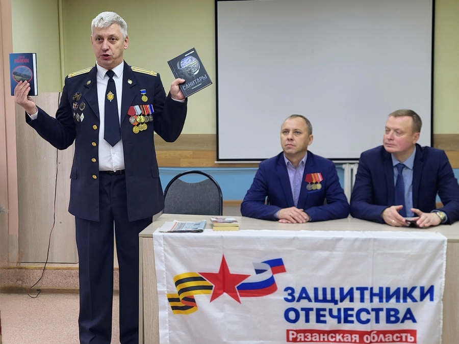С молодёжью встретились сотрудник УФСБ России по Рязанской области Андрей Соколов, ветеран госбезопасности Сергей Рюмин и заместитель директора Государственного фонда «Защитники Отечества», участник специальной военной операции Виктор Кучеренко.