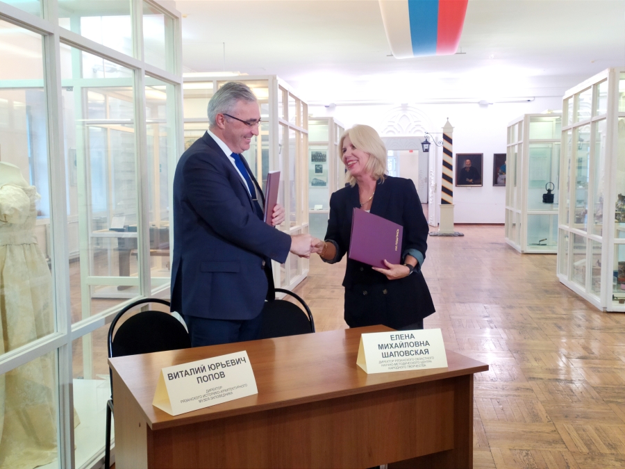 Экспозиция посвящена Году культурного наследия народов России. Ее основа – творения мастеров народных промыслов и ремесел: набивные ткани, которые нравятся и современным модницам, искусная вышивка, керамика, плетеные изделия… Параллельно выставка рассказывает историю создания Рязанского кустарного музея. Его открыло губернское земство в 1913 году, и коллекция музея впоследствии стала основой этнографической коллекции музея-заповедника.