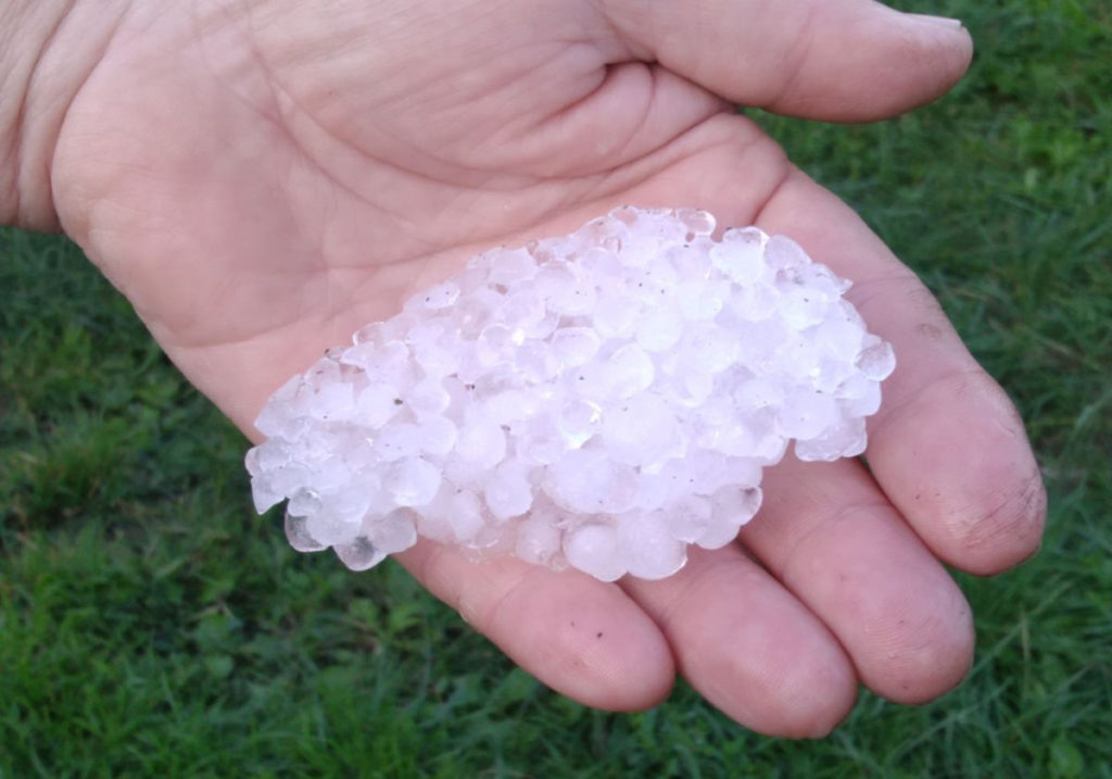 Вчера вечером в Сапожке прошел град размером с горошину.