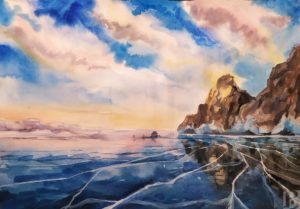 Выставку «Первая» можно интерпретировать как собрание первых впечатлений от тех или иных событий. Первого снега, который кружит над темной многоэтажкой и единственным горящим окном на картине Ольги Баскаковой. Первого радостного знакомства с традициями – его во всех красках изобразила Ирина Быстрова. Первых невероятных ощущений от прогулки по льду Байкала, который так свежо нарисовала Лилия Мазалова. Первой охапки летних цветов, первых теплых выходных в родной деревушке, первой встречи с мудрым человеком…