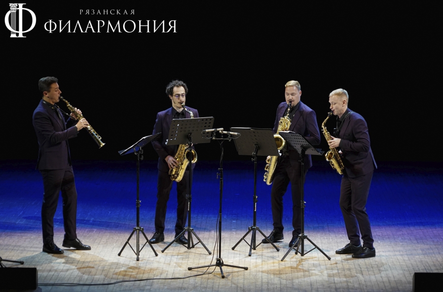 Российский квартет саксофонистов – Владимир Кознов (саксофон-сопрано), Геннадий Полуяктов (саксофон-альт), Станислав Пялов (саксофон-тенор) и Илья Богомол (саксофон-баритон) – имеет большой опыт выступлений на международных фестивалях. Саксофонисты квартета стали финалистами и лауреатами проекта «Квартет 4х4» телеканала Россия Культура и победили в Первом международном конкурсе ансамблей «Национальная коллекция 2018». Артисты побывали в десятках городов страны – от Центральной России до Дальнего Востока. И ситуации на сцене, когда без импровизации не обойтись, случались не единожды. Может быть, поэтому концерт в Рязани воспринимался как по-настоящему живая музыка, проникающая в душу и сердце зрителя.