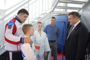 Прибыл на открытие СШ «Триумф» и начальник УМВД России по Рязанской области генерал-майор полиции Сергей Лебедев. Сотрудник его ведомства, чемпион страны по самбо и дзюдо Андрей Волков будет тренировать в «Триумфе» юных спортсменов (отделение дзюдо откроется через год). Сергей Николаевич пригласил Николая Викторовича в расположенный по соседству спорткомплекс «Динамо», открывшийся два года назад. Почетные гости пообщались там с юными дзюдоистами.