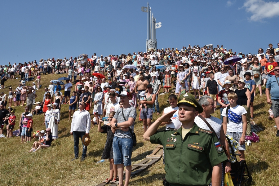 На берегу Вожи выступал оркестр войск Национальной гвардии России. На всю округу звучали песни о доблести и отваге русского народа.