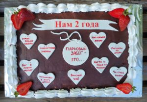На месте старта, у Зеленого театра ЦПКиО, всех желающих пробежать 5-километровую дистанцию встречала с тортом Анна Котлярова.