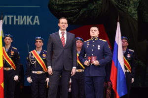 На торжестве губернатор Павел Малков вручил военнослужащим и ветеранам боевых действий государственные и региональные награды. Глава региона особо выделил медали общественного признания «Отец солдата». Эти медали Павел Малков вручил Владимиру Павловичу Бажанову, Александру Павловичу Давыдову и Александру Георгиевичу Лебедеву. Сын Владимира Павловича Бажанова Евгений как участник СВО учится сейчас по кадровой программе «Герои62». Сыновья Александра Павловича и Александра Георгиевича погибли в специальной военной операции. В память о погибших губернатор Павел Малков объявил минуту молчания.