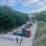 Уже в конце прогулки отметил, что несмотря на вечер выходного дня продолжаются работы по благоустройству Лыбедского бульвара на участке от ул.Ленина до ул.Горького.