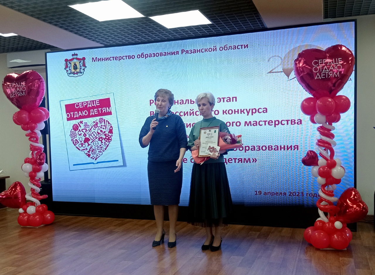 Итоги очного тура регионального этапа Всероссийского конкурса «Сердце отдаю детям» подвели в Рязани. В нем принимали участие шесть педагогов дополнительного образования из городов и районов Рязанской области. По итогам групповых индивидуальных конкурсных испытаний были определены три победителя. Третье место заняла Екатерина Комписенко из Мурминской школы Рязанского района, на втором – Владимир Антонов из Касимовской школы №6. Первое место и звание абсолютного победителя конкурса у Юлии Василихиной – педагога дополнительного образования центра развития творчества Сасовского района.