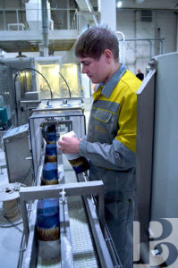Инженер-наладчик Олег Торшин работает на предприятии два с половиной года. Зарплатой доволен, как и условиями труда. За его смену лишь на одной линии, которую он обслуживает, фасуется около 100 тонн муки. Причем благодаря полной автоматизации сотрудники предприятия не касаются продукта. Контроль белизны, содержания белка, микроэлементов, зольности и точности помола происходит на всех этапах производства муки в режиме онлайн.