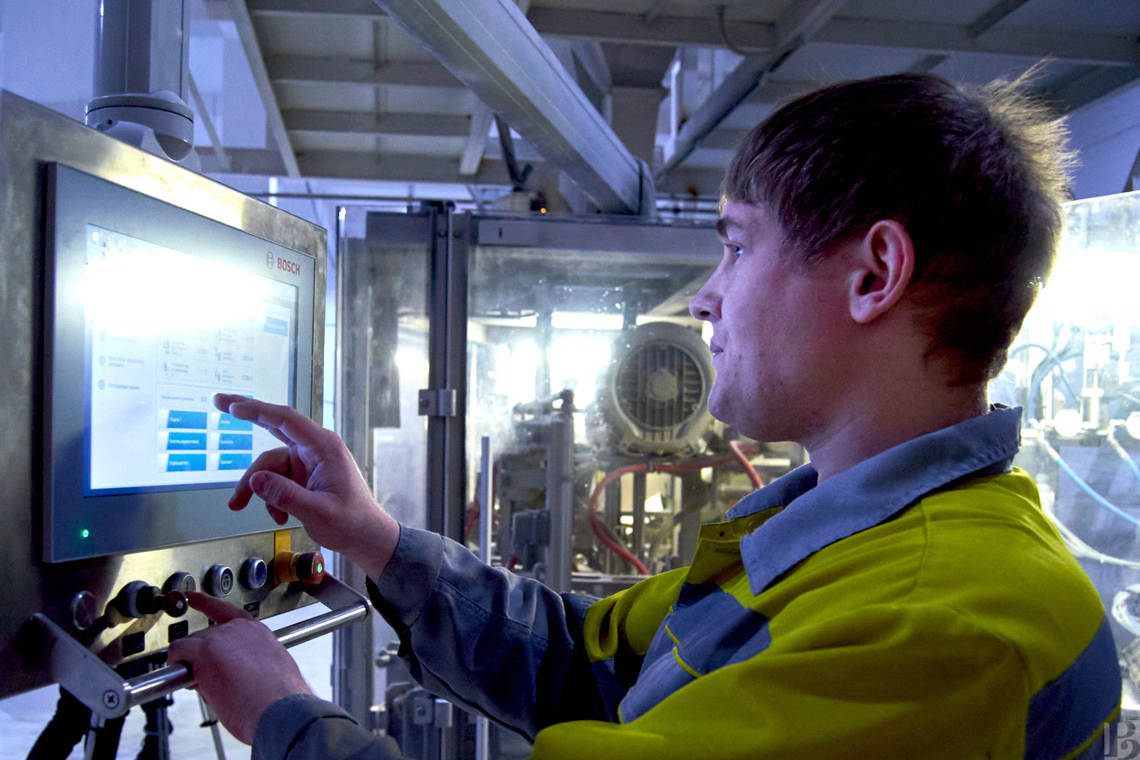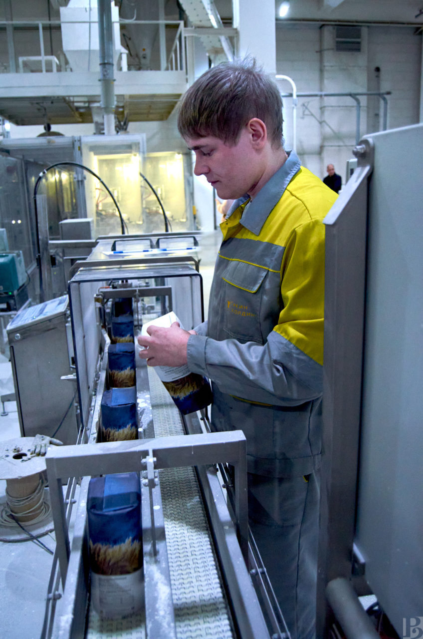 Инженер-наладчик Олег Торшин работает на предприятии два с половиной года. Зарплатой доволен, как и условиями труда. За его смену лишь на одной линии, которую он обслуживает, фасуется около 100 тонн муки. Причем благодаря полной автоматизации сотрудники предприятия не касаются продукта. Контроль белизны, содержания белка, микроэлементов, зольности и точности помола происходит на всех этапах производства муки в режиме онлайн.