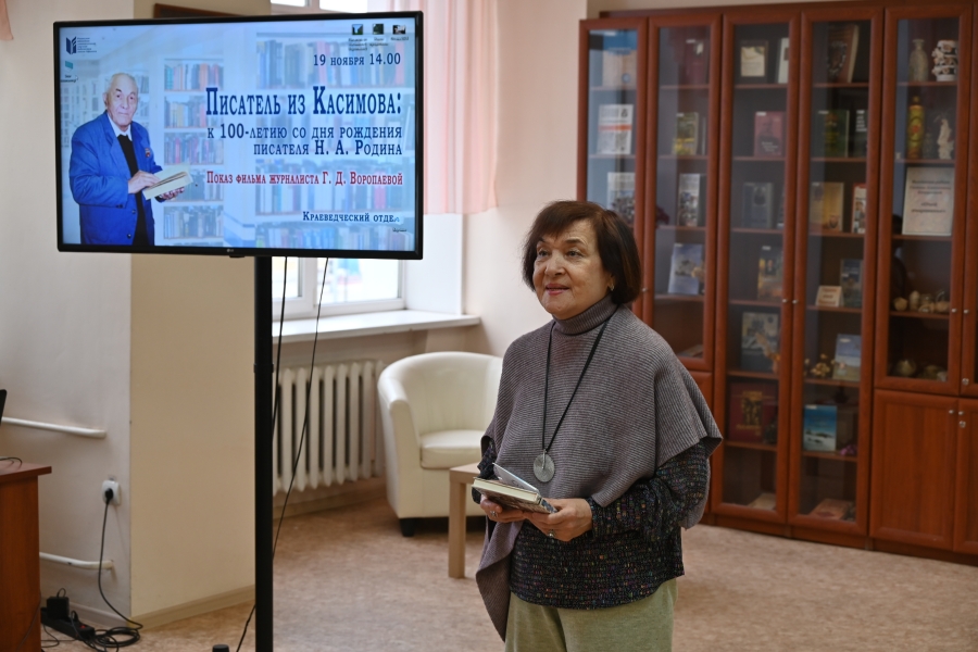 К столетию известного писателя, лауреата Всероссийской премии «Малая родина» Николая Александровича Родина в отделе краеведения библиотеки имени Горького развернута выставка его книг. Но гостям вечера представилась и другая возможность: увидеть писателя на большом экране. Журналист Галина Воропаева показала свой телеочерк «Писатель из Касимова», снятый в 2002 году. В беседе с журналистом Николай Родин вспоминает Касимов своей молодости, рассуждает о сложностях времени, о драматичных эпизодах судьбы, в том числе об исключении из Союза писателей Александра Солженицына. Вспоминает родственников, которые безвинно пострадали в сталинскую эпоху, подверглись репрессиям.