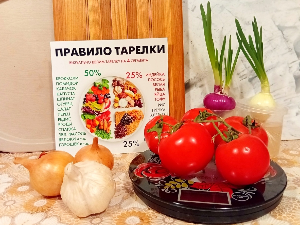 Правило половины тарелки: ½ каждого приема пищи — это некрахмалистые овощи и зелень. Они дают витамины, антиоксиданты и клетчатку.