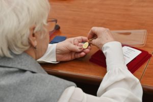 Знака губернатора «Доброволец Рязанской области» удостоена Надежда Викторовна Доценко – волонтёр серебряного возраста отряда «Аргентум» Комплексного центра социального обслуживания населения Рязани. Вместе с другими активистами она шефствует над ветеранами Великой Отечественной войны, детьми войны и тружениками тыла, реализуя проект «Мы помним подвиг ваш». Получив награду, Надежда Викторовна обратилась к молодым своим коллегам с призывом не останавливаться, продолжать действовать во имя добра и помогать ближнему.
