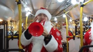 Сегодня вечером рязанцы стали свидетелями необычного события. На улицах города останавливался украшенный гирляндами и разноцветными огнями автобус, откуда выходили Деды Морозы с музыкальными инструментами и исполняли новогоднее попурри.