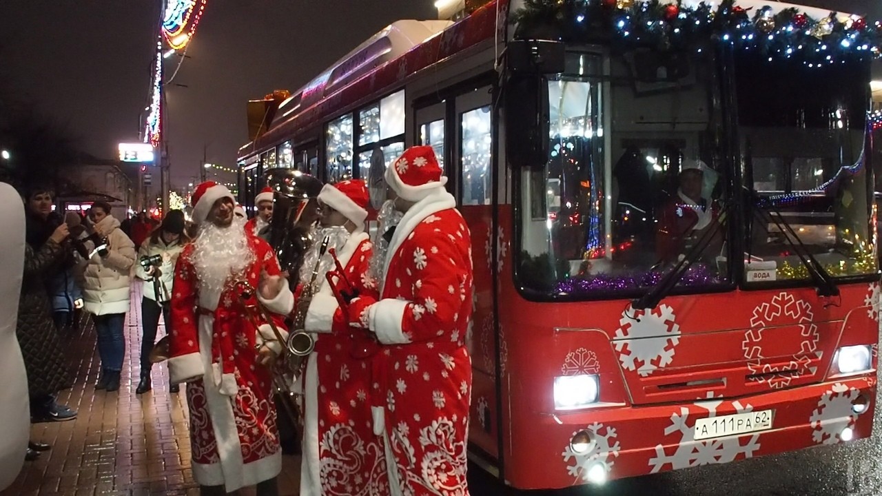 Сегодня вечером рязанцы стали свидетелями необычного события. На улицах города останавливался украшенный гирляндами и разноцветными огнями автобус, откуда выходили Деды Морозы с музыкальными инструментами и исполняли новогоднее попурри.