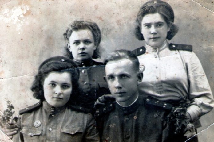 – Моя мама родилась 22 апреля 1925 года. В 1943 году, после освобождения села, ушла на фронт. Будучи телефонистом батальона, участвовала в форсировании Днепра. После ранения она – командир расчета ДШК – зенитного дивизиона сопровождения поездов. На ее счету сбитый Ю-87 и орден за это. Войну закончила в Вене. И таких, как ваша и моя мамы, были тысячи и тысячи. Вечный им поклон. Из села на войну ушли вместе с мамой шесть подружек, вернулись только две. Вот мамин пулеметный расчет (она слева) и командир огневого взвода. Он вскоре погиб при отражении налета на сопровождаемый эшелон. Именно поэтому мы должны быть безмерно благодарны тем, кто ради нашей жизни отдал свою.