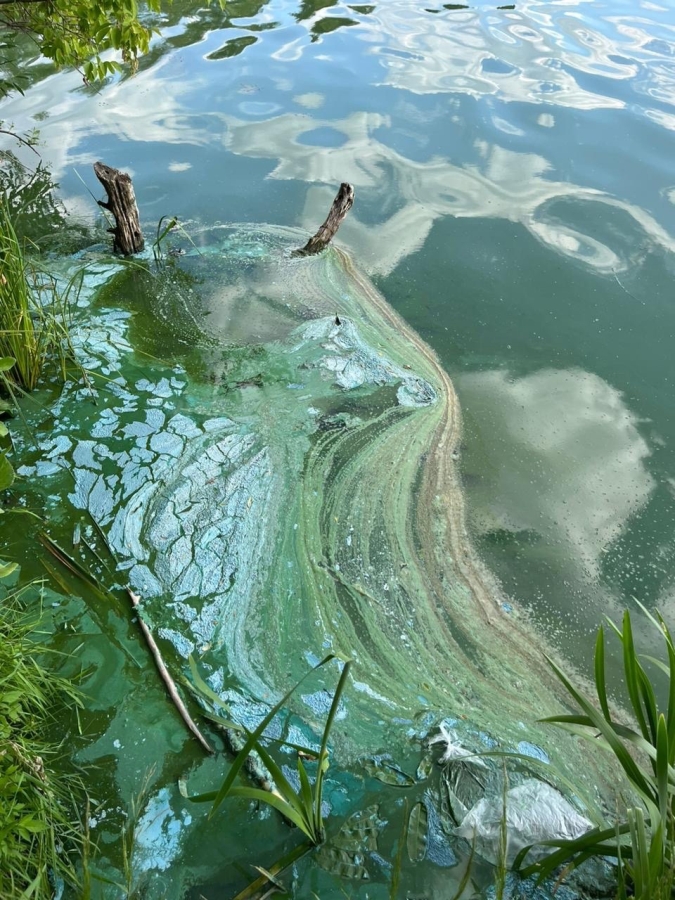 «На момент выезда синие пятна практически отсутствовали. Это позволило предположить, что сине–зеленые разводы вызваны вспышкой размножения цианобактерий, которые могут выжить в большом диапазоне температур и состава воды. В водоемах, где нет стока, сине-зеленый планктон начинает концентрироваться в одном месте, придавая ему соответствующий цвет», – сообщили специалисты Минприроды. Они отметили, что цианобактерии живут всего 12 часов, поэтому на момент прибытия инспекторов соотвествующие признаки уже могли исчезнуть. Было принято решение продолжить контроль над сложившейся ситуацией и направить на место специальную лабораторию.