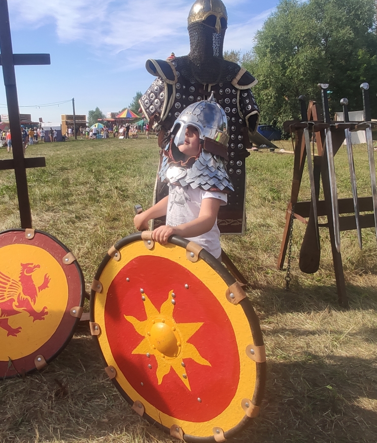 На площадке «Удаль богатырская» историко-патриотический клуб «Белый Кречет» рассказывал об оружии Х века. Гости фестиваля могли примерить доспехи весом более 10 килограммов и запечатлеть себя в историческом фотоателье, подержать в руках сабли, булаву или дубинку, пострелять из лука. Разворачивались нешуточные бои, правда, на мягких мечах.