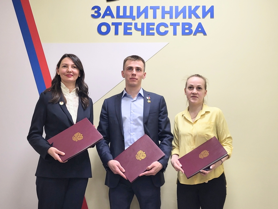 Руководитель филиала фонда «Защитники Отечества» Ольга Маскаева, руководитель Общественной организации ветеранов СВО, Герой России Владислав Головин, руководитель Комитета семей воинов Отечества, жена погибшего Героя России Людмила Ягидарова подписали соглашение о совместной работе.