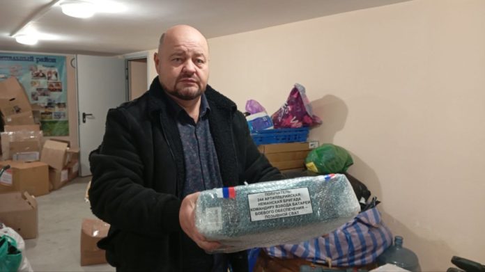Фургон загружен «под крышу», и мы едем в Соколовку, где оборудована перевалочная база «Добровольца». Нас встречает Алексей Григорьев, командир гуманитарного конвоя фонда рязанской региональной организации «Доброволец», координирующий работу фонда по всей области.