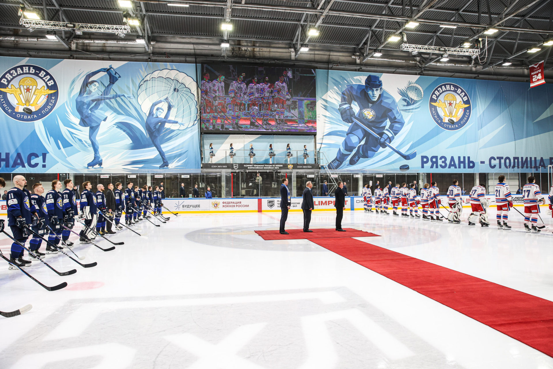 ХК «Рязань-ВДВ» принимал тульскую команду «АКМ». Перед началом матча к многочисленным болельщикам, заполнившим трибуны дворца спорта «Олимпийский» до отказа, с приветственным словом обратились президент Федерации хоккея России, трёхкратный олимпийский чемпион (1972, 1976 и 1984), десятикратный чемпион мира (1970-1983) Владислав Третьяк и губернатор Рязанской области Павел Малков. Почётные гости приняли участие в символическом вбрасывании шайбы и далее наблюдали за ходом игры со зрительской трибуны для VIP-гостей.