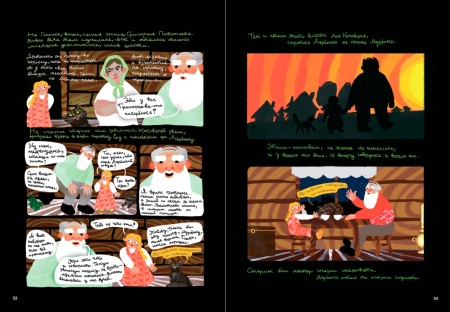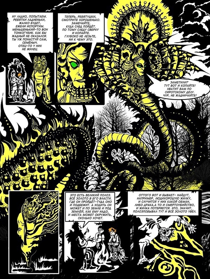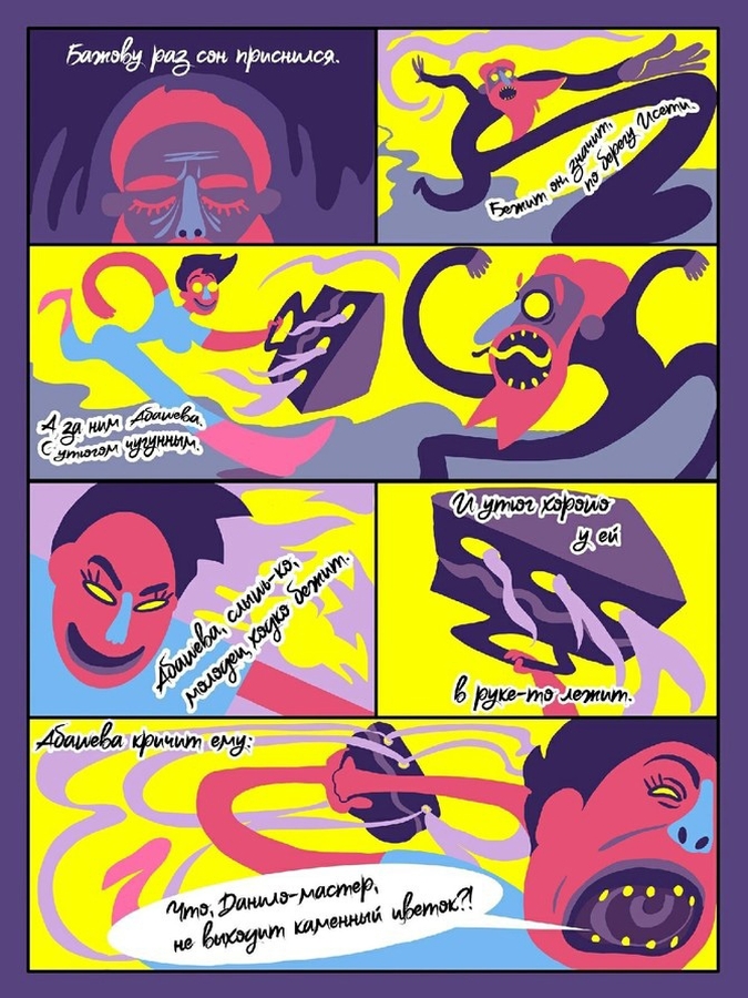 Увлекательнейшее, скажу я вам, и очень масштабное получилось произведение – «ПП Бажов. Графический роман» 16+. Над его текстами трудилась целая команда литераторов и филологов, а 200 страниц удивительных рисованных историй создали молодые художники со всей России.