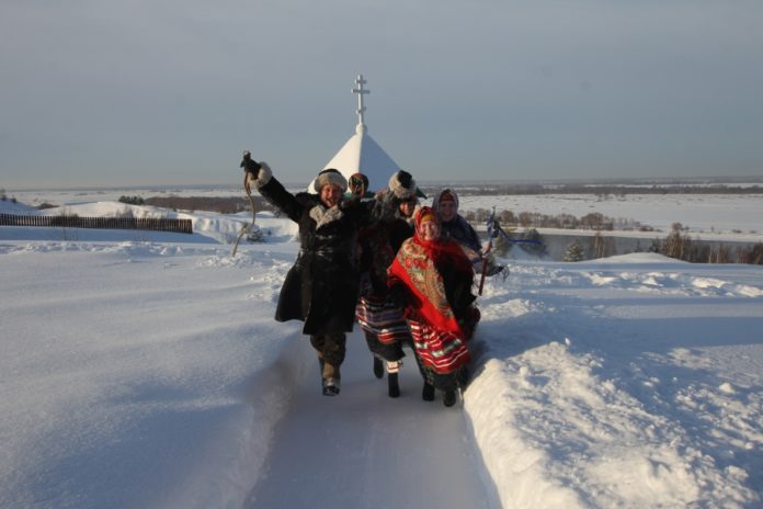 Н.Р. – Программа «Забежала Коляда на село» зародилась еще в детской «Звоннице». А в музейном театре мы добавили новые эпизоды: таусень, танец половицы, святочные гадания, настоящий вертеп с куклами, со свечами и другие… Сначала колядуем у дома родителей поэта, в доме показываем народные обычаи, гадаем, появляется Бабка Коляда, потом переходим в дом священника Ивана Смирнова и там славим Христа, поем кондак, показываем вертепное представление, угощаем пирогами.