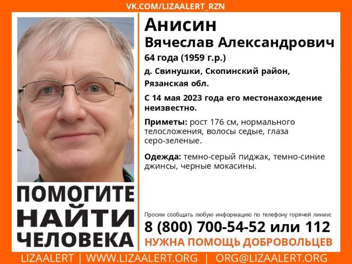 64-летнего жителя деревни Свинушки Скопинского района Вячеслава Анисина нашли живым, сообщают волонтеры ПСО «Лиза Алерт».