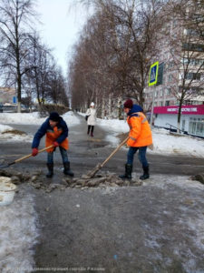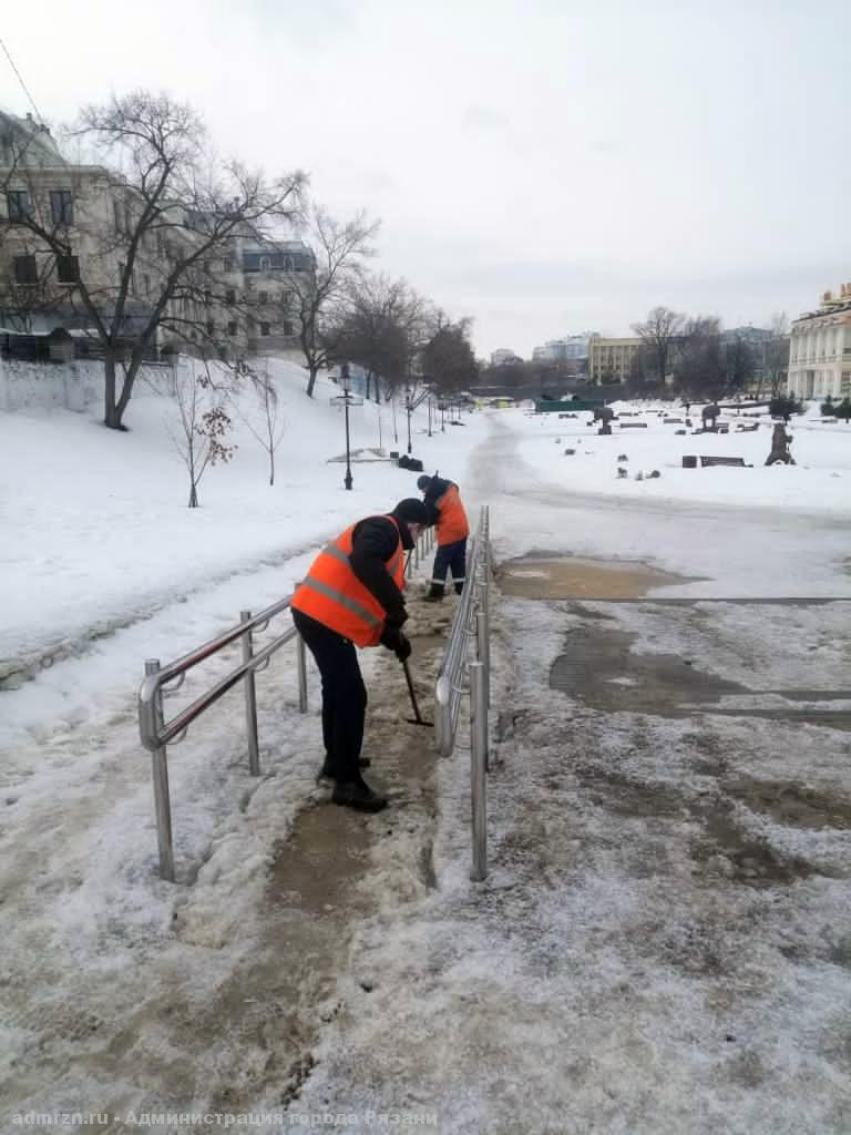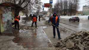 Тротуары от наледи обрабатывались на улицах Дзержинского, Гагарина, Чкалова, Весенней, Соборной, Набережной, Есенина, Зубковой, Новой, Циолковского, Горького, Маяковского, Тимуровцев. Такие работы проводятся ежедневно, в них задействованы бригады рабочих и малая механизированная техника.