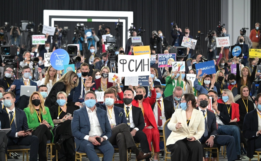 Большая пресс-конференция Президента России Владимира Путина продлилась три часа 56 минут, глава государства ответил на 55 вопросов. Мероприятие проходило в Центральном выставочном зале «Манеж». В этом году на него аккредитовали 507 представителей различных изданий и телеканалов, в том числе иностранных и региональных.