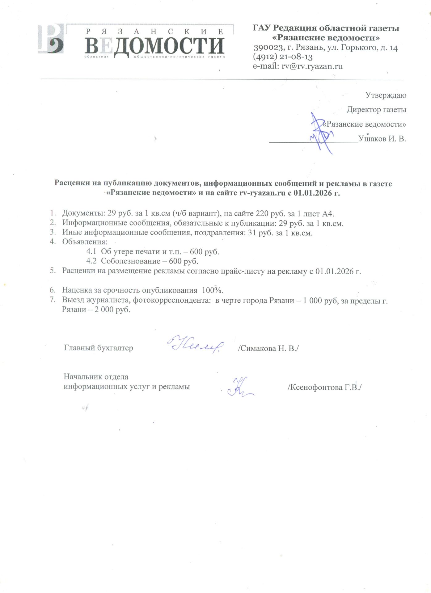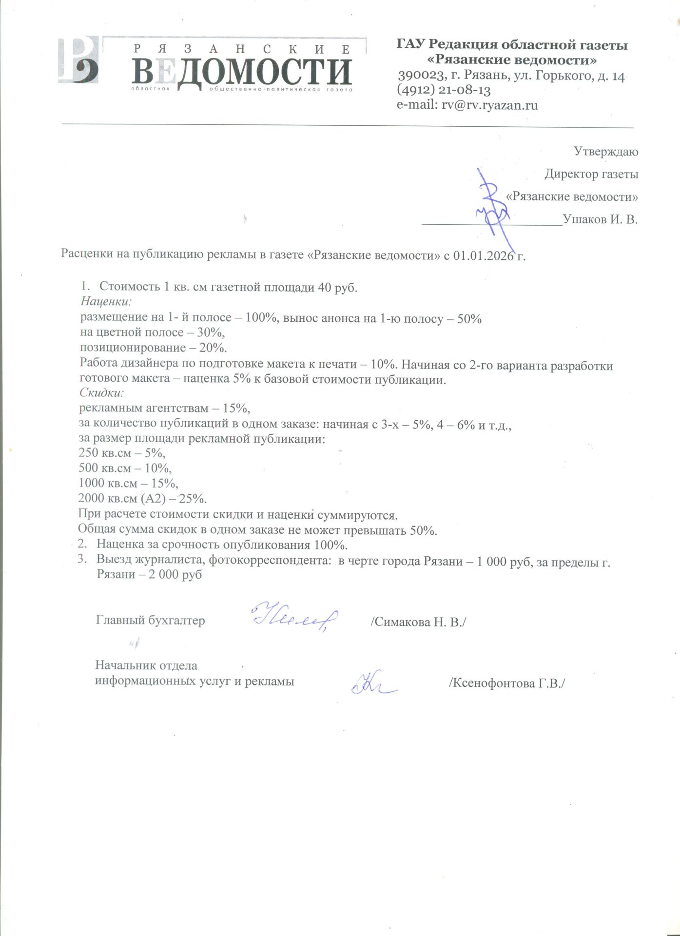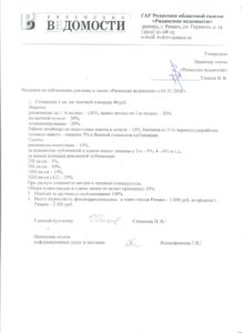 Стоимость публикации рекламно-информационных материалов на сайте rv-ryazan.ru:
